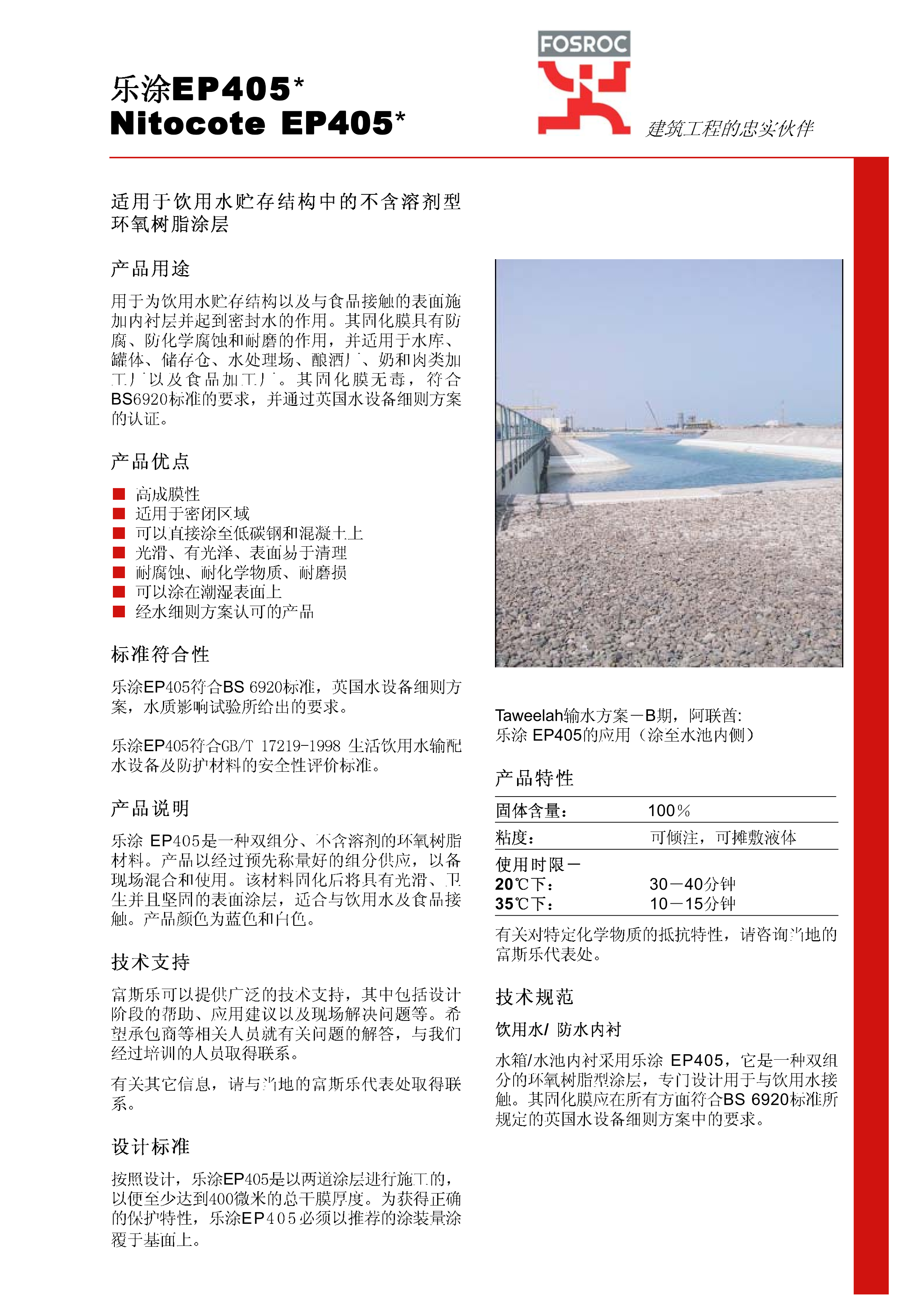 樂涂EP405(適用于飲用水貯存結(jié)構(gòu)中的無溶劑型環(huán)氧樹脂涂層)