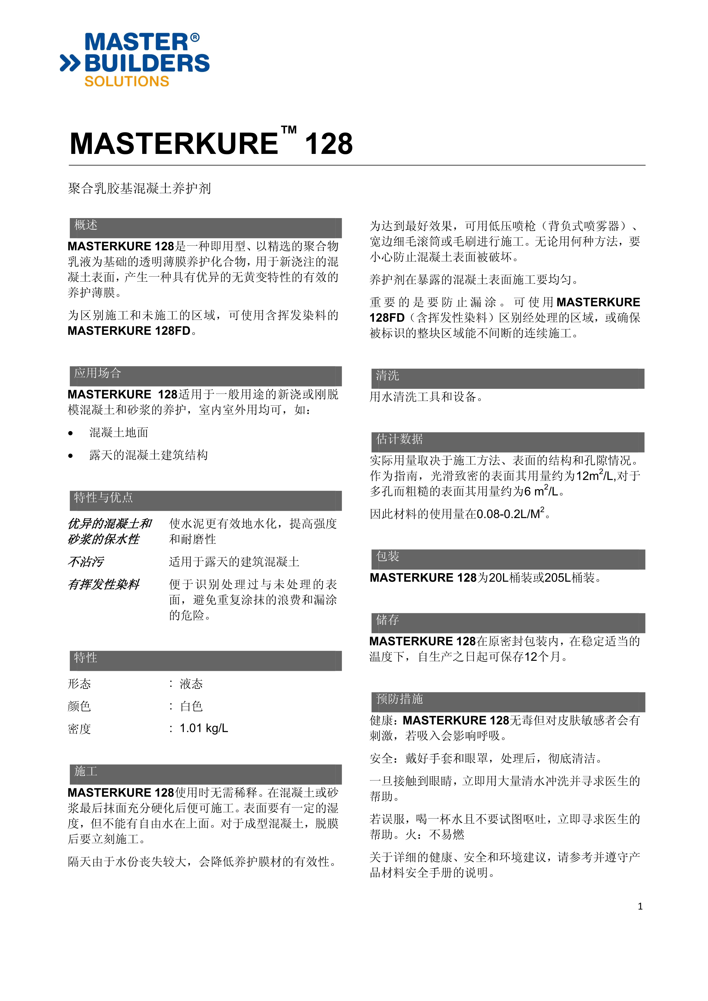 巴斯夫養(yǎng)護(hù)劑MASTERKURE 128