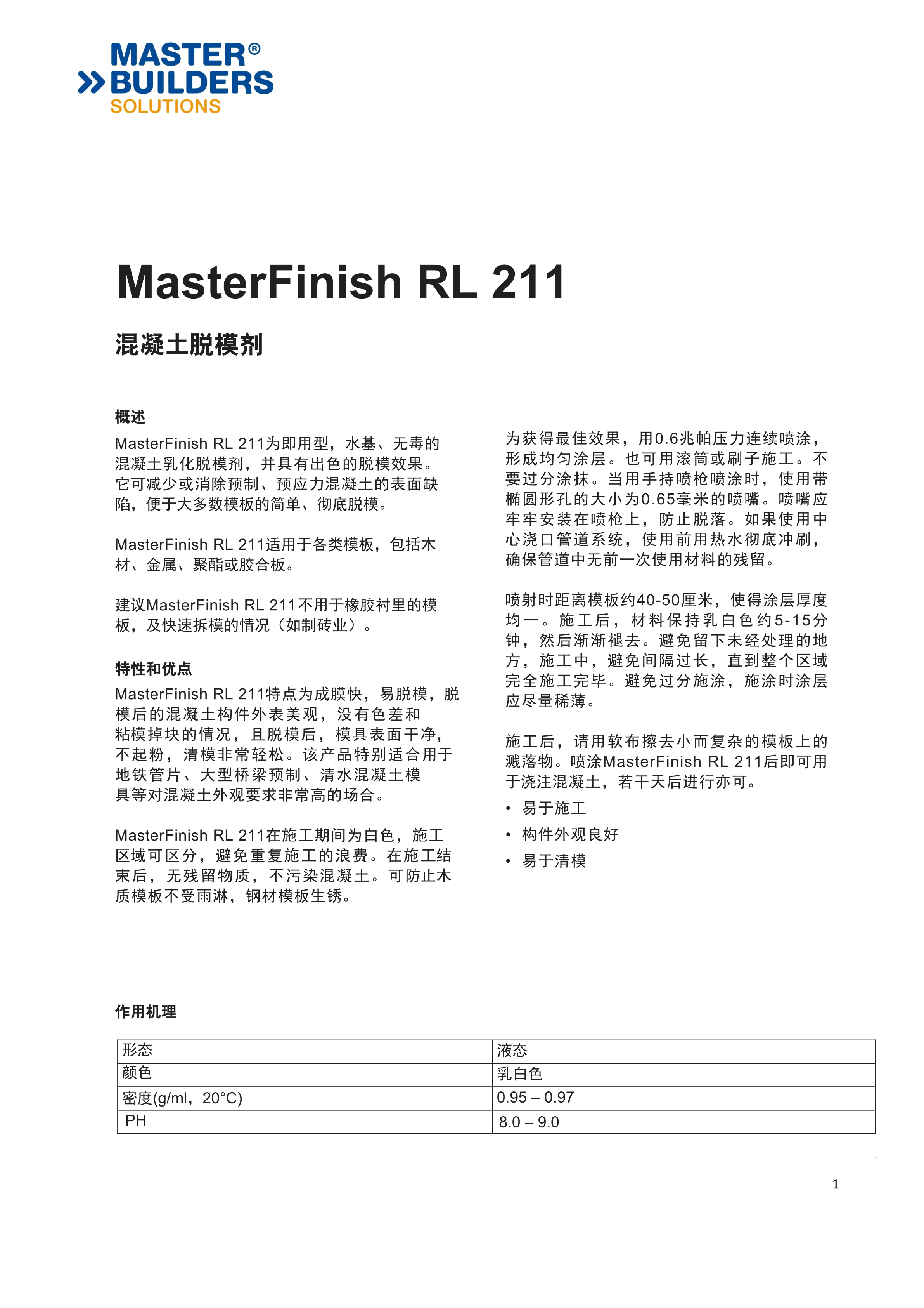 巴斯夫脫模劑 MasterFinish RL 211