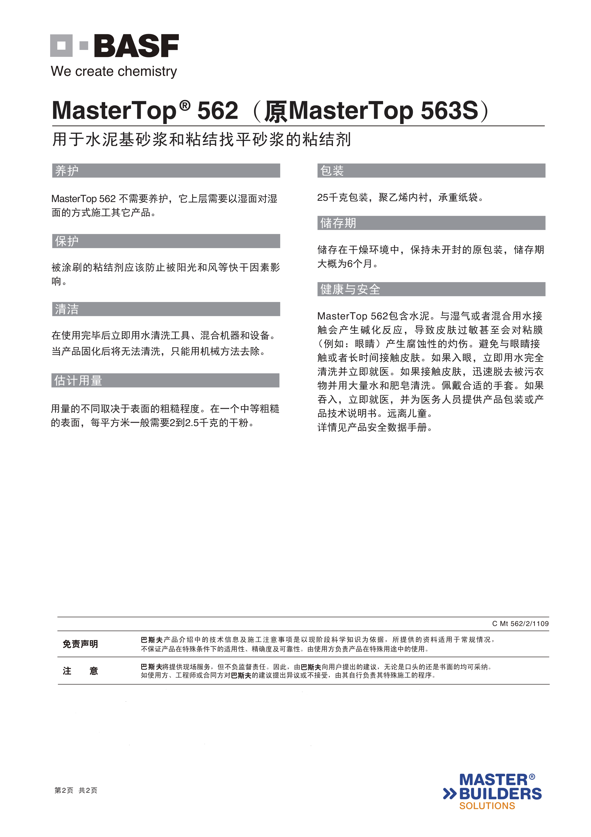巴斯夫混凝土粘結(jié)劑MASTERTOP 562