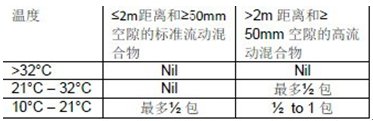 下表提供了每套材料可以減少骨料用量的指南,以便單位體積灌漿料的流動度和成本最優(yōu)化。使用本指南時(shí),基礎(chǔ)和地板的溫度是關(guān)鍵因素;然而,灌漿料和環(huán)境溫度也很重要。