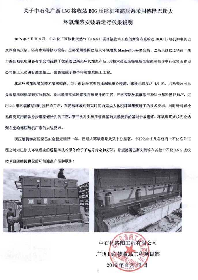 ? 輸氣和其它工業(yè)領(lǐng)域中壓縮機(jī)和動力泵等設(shè)備的精密灌漿。
