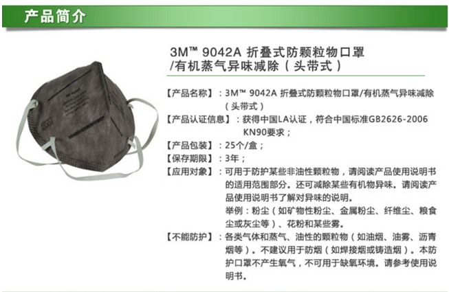 3M9042A折疊式防顆粒物口罩