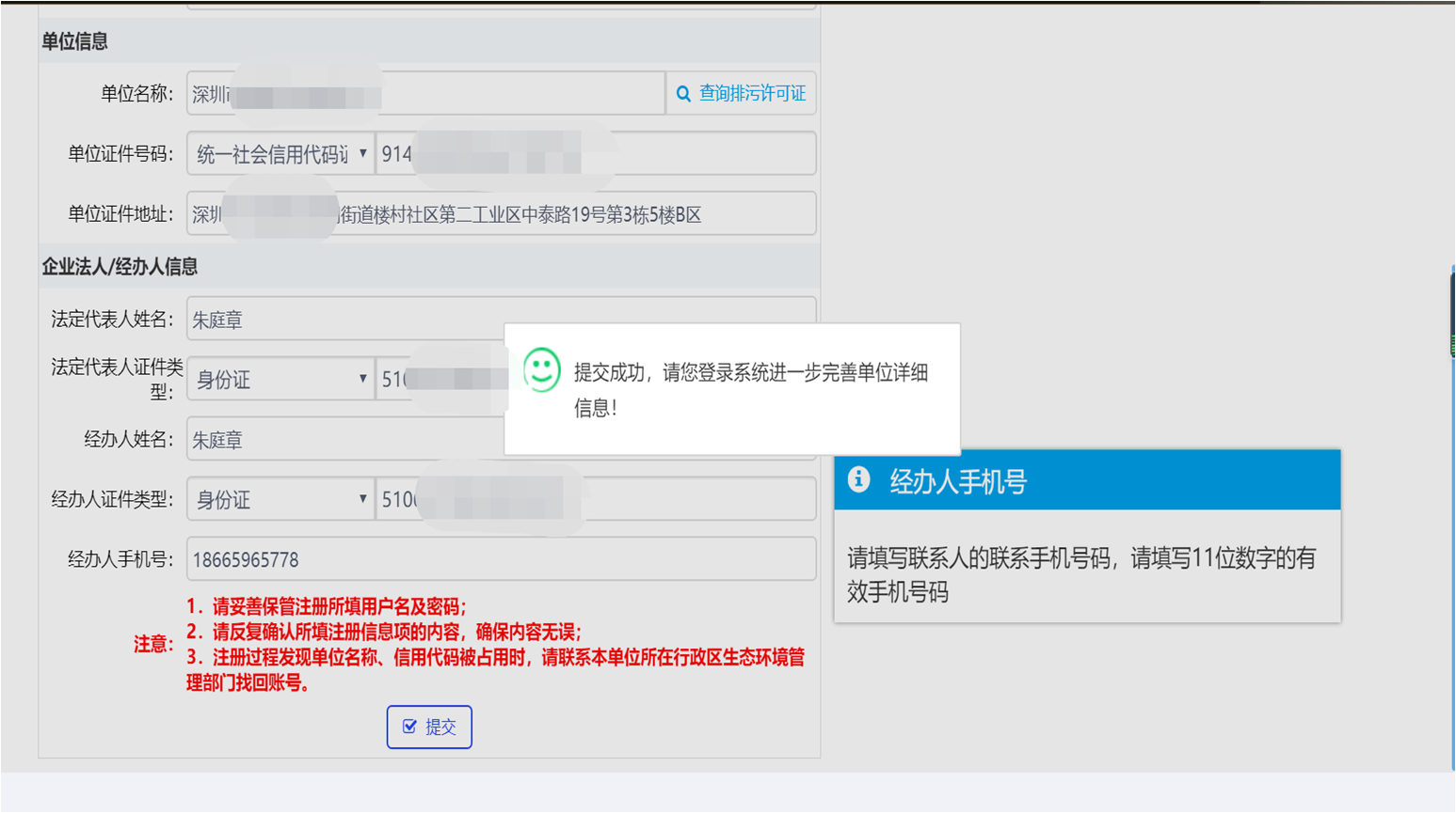 提交完成登入系統(tǒng),點擊注冊信息完善